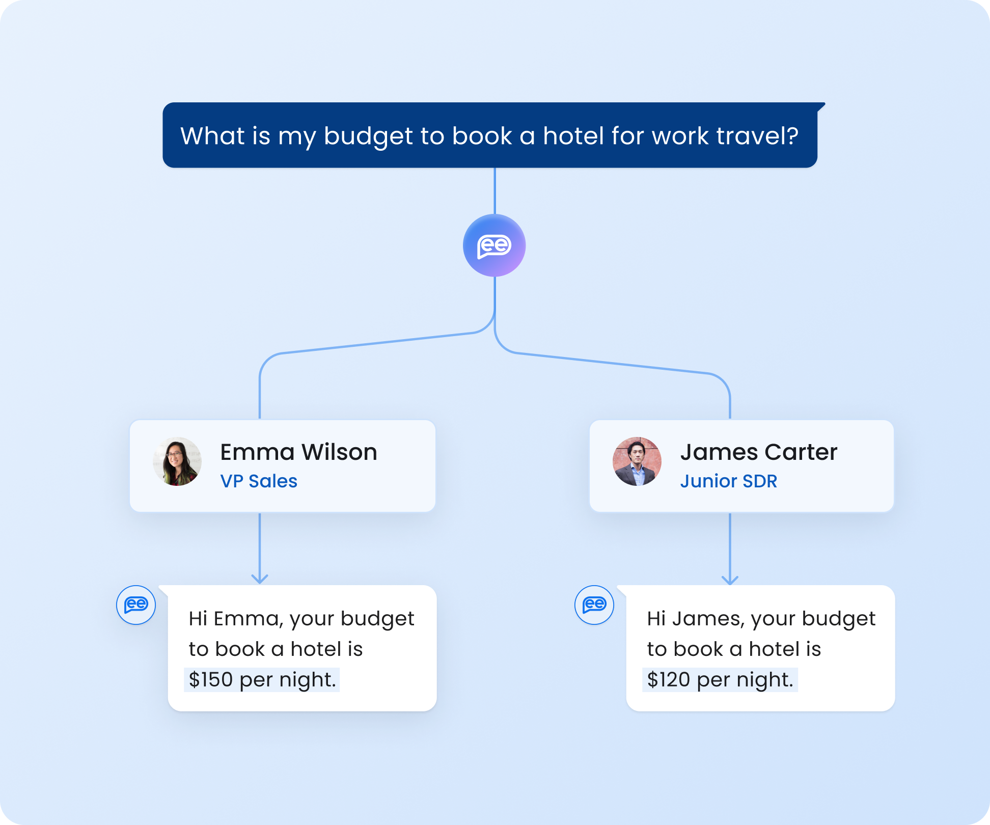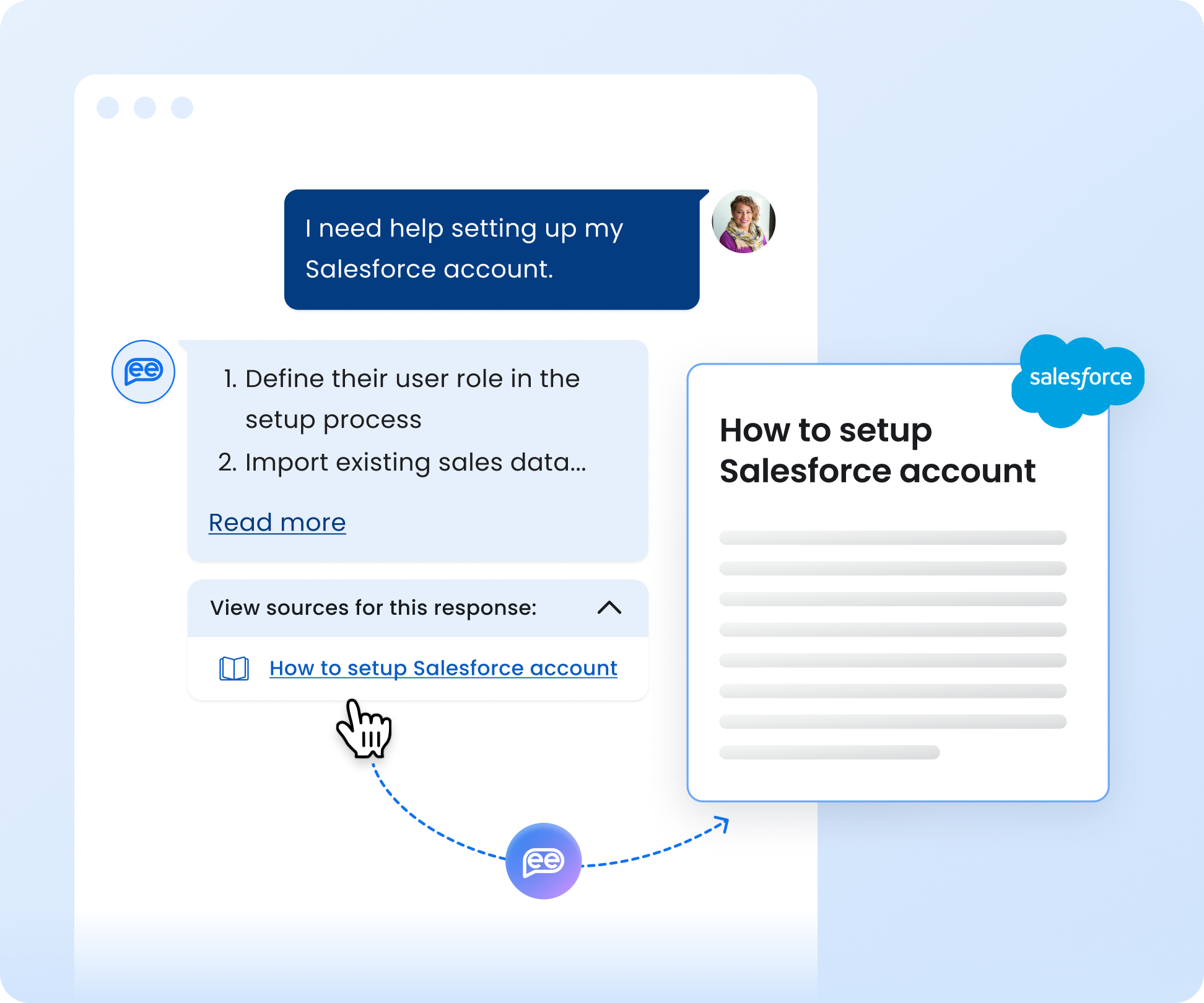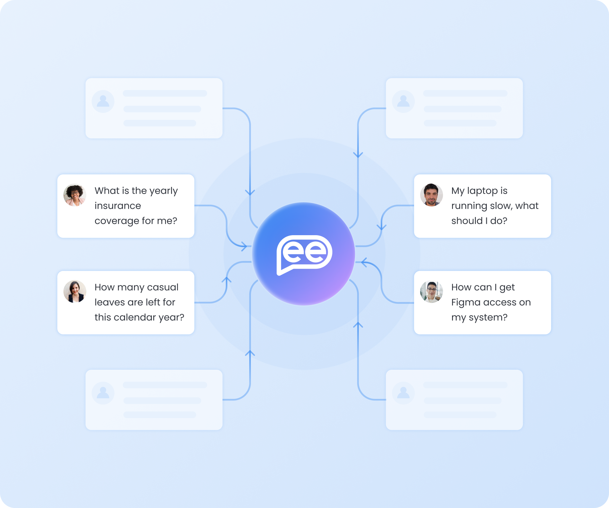 Humans engage in dialogues no matter the context. With an AI employee assistant platform, employees on the one hand might be satisfied with knowledge served in conversational mode. But on the other hand, they perform some follow-up action or dive deeper into additional information upon requesting the knowledge initially. An automated agent-like solution can serve such needs unlike a knowledge tool